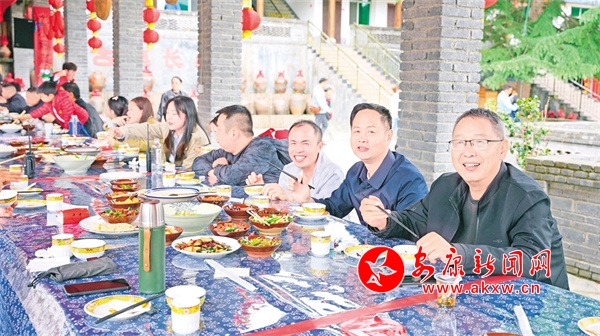 “我現(xiàn)在是在雙河口古鎮(zhèn)的長桌宴現(xiàn)場,在我身后的長桌上已經(jīng)擺滿了酸辣茴香小魚、漢陰豆腐干等10余種特色菜肴,游客們圍桌而坐、品嘗美食、好不熱鬧。”5月2日,在雙河口古鎮(zhèn)“五一”旅游季期間,漢陰縣融媒體中心記者介紹著長桌宴現(xiàn)場盛況。yH6安康新聞網(wǎng)