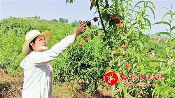 走進蔣家溝,大片桃林綠意盎然,一個個鮮紅飽滿的油桃和紅桃掛滿枝頭,濃郁的果香撲鼻而來,“桃”醉人心。果農(nóng)們提著籃子穿梭其間忙著采摘,豐收的喜悅溢于言表。“今年的桃子產(chǎn)量比去年高,品種多、品質(zhì)也有保障,剛上市就收了三個大訂單,大家得抓緊把貨備齊……”前進村產(chǎn)業(yè)發(fā)展負責(zé)人楊啟軍一邊分揀果子,一邊和入園務(wù)工的群眾交流。