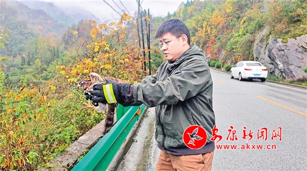 “它剛才在路中間不能動彈,好像受傷了,車來車往太危險了,我們得想辦法救救它。”周文棋一邊將大鳥挪至路邊,一邊焦急地說。
