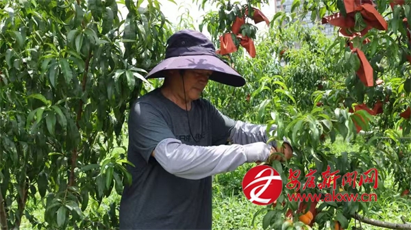 同樣迎來收獲的還有城關(guān)鎮(zhèn)的黃桃,在城關(guān)鎮(zhèn)龍嶺村的黃桃種植基地,連片的桃樹郁郁蔥蔥,金燦燦的黃桃壓彎了枝條,空氣中彌漫著誘人的桃香;刎撠熑藙⒑暾χ烧,臉上洋溢著燦爛的笑容,他一邊采摘一邊介紹道:“我們這個桃園有金鳳黃桃、黃金黃桃、秋彤桃和冬桃四個品種,一共有9畝多,從6月中旬到10月左右,陸續(xù)都有成熟的桃子。”