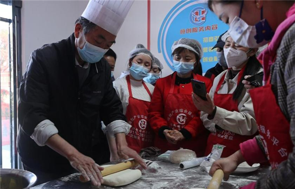 △學(xué)員們跟著師傅認(rèn)真學(xué)習(xí)面點(diǎn)技能syR安康新聞網(wǎng)