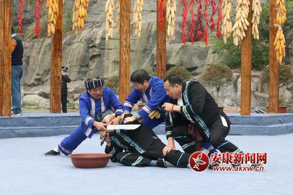 嵐皋“巴人山歌”、“攀巖牛人”一一登場。舞臺(tái)上信手拈來的情歌對(duì)唱、舞臺(tái)后山上驚險(xiǎn)的攀巖表演加上舞臺(tái)前帶有濃厚鄉(xiāng)土氣息地劃拳飲酒聲,巴山、巴人的“忠勇剛烈”精神內(nèi)涵,被展現(xiàn)得淋漓盡致。