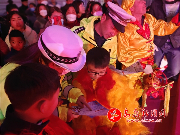 為更好地將宣傳活動(dòng)融入元宵節(jié)民俗活動(dòng)中,宣傳民警提前搜集制作了通俗易懂的交通安全知識(shí)燈謎,同時(shí)還準(zhǔn)備了交通安全小禮品,與群眾一起互動(dòng),猜燈謎,解謎面,現(xiàn)場歡聲笑語不斷,既豐富了群眾文化生活,又宣傳了交通安全知識(shí),受到廣大群眾的青睞,演繹了警民一家親的魚水深情。