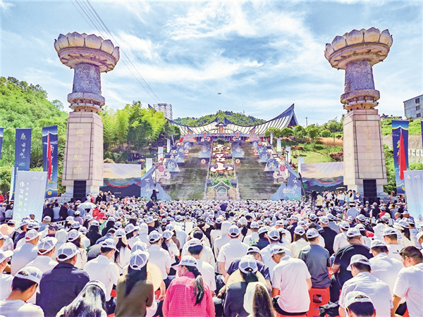暮春的南宮山,蒼翠浸染。在悠揚(yáng)的《神奇美麗南宮山》旋律中,活動(dòng)正式啟幕,《序章·天門(mén)啟道》《天玄·問(wèn)道山河》《地杰·武韻巴人》《和鳴·萬(wàn)象共生》四大篇章層層遞進(jìn)。伴隨著激昂的音樂(lè),國(guó)樂(lè)表演《刀劍如夢(mèng)》、竹海劍影《笑傲江湖》、巴人武韻《虎鈕錞于》、武術(shù)《天地人和》、舞+武《舞武對(duì)弈》等節(jié)目依次出場(chǎng),活動(dòng)現(xiàn)場(chǎng)鼓點(diǎn)如雷,舞者們騰空而起,剛猛的武術(shù)招式與充滿(mǎn)力量感的戰(zhàn)舞動(dòng)作交織,每一次騰躍,都將現(xiàn)場(chǎng)觀眾的熱血與激情點(diǎn)燃。
