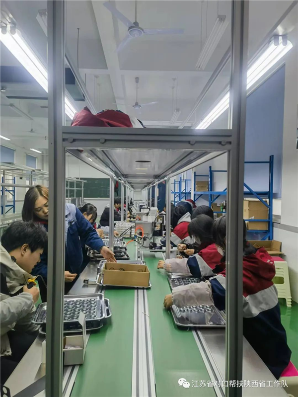 為了探索蘇陜協(xié)作產(chǎn)業(yè)發(fā)展新路徑,聯(lián)絡(luò)組依托安康蘇陜誠銘電子科技有限公司在嵐皋縣職教中心建設(shè)并投運(yùn)了校企合作示范基地和“勞動(dòng)教育+職業(yè)體驗(yàn)”研學(xué)基地,從而嘗試出了蘇陜協(xié)作在產(chǎn)教融合領(lǐng)域的一種新模式。