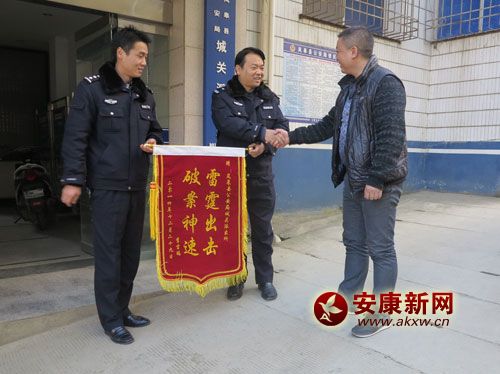 安康新網(wǎng)訊(通訊員 汪華平)12月29日,嵐皋縣城關鎮(zhèn)居民李吉瑞、常照兵分別將寫有“雷霆出擊 破案神速”、“神警雄風 犯罪克星”錦旗送到嵐皋縣公安局……