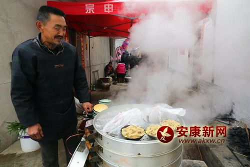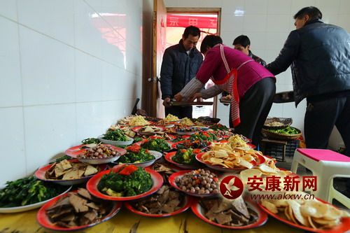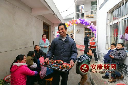 這時,新郎家是最熱鬧的,為了辦好婚禮,附近的親朋好友一一前來幫忙和捧人氣。新郎的家里搭起了氣球彩門,紅紅的對聯(lián)和喜字分別貼在窗戶和門上,院壩里架起了大蒸籠,八大碗早就上了籠,涼菜在案板上整整齊齊的一溜溜擺著。花生、瓜子、糖果一一擺在屋子里、院壩里的十來張大圓桌上。按照墻上貼著的執(zhí)事單的安排,廚房、客廳、禮房等每個角落的人都在干著自己的事情。寒冬里的婚禮,沒有人喊累,嚴寒在這一刻被驅(qū)散。