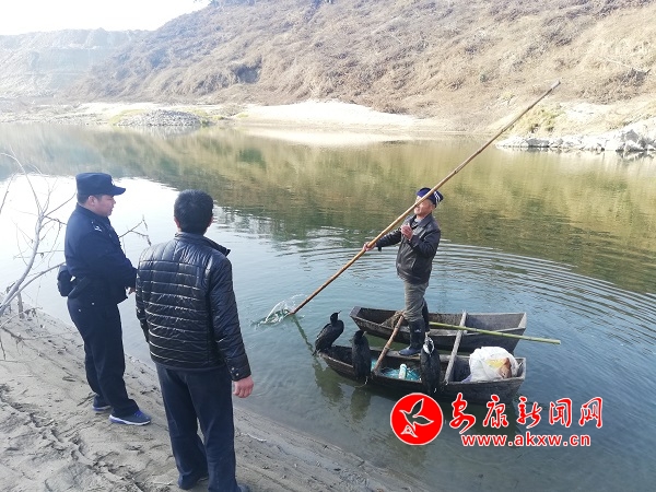 12月27日14時許,寧陜縣公安局筒車灣派出所接到群眾舉報:在寧陜縣梅子鎮(zhèn)安坪村汶水河道內(nèi)有人用魚鷹和漁網(wǎng)捕魚。接警后,民警迅速聯(lián)合寧陜縣水利執(zhí)法部門前往現(xiàn)場查處,現(xiàn)場查獲魚鷹3只,漁網(wǎng)6副、活魚20余斤,經(jīng)詢問,張某、黃某2人對非法捕魚供認不諱,并稱時至年關,自己想通過捕魚搞點“年貨”。民警調(diào)查取證結(jié)束后,按照相關程序?qū)讣平恢翆庩兛h水利執(zhí)法部門,由水利執(zhí)法部門對上述違法行為處以罰款500元的行政處罰,對捕魚工具予以收繳,所捕獲的活魚進行放生。