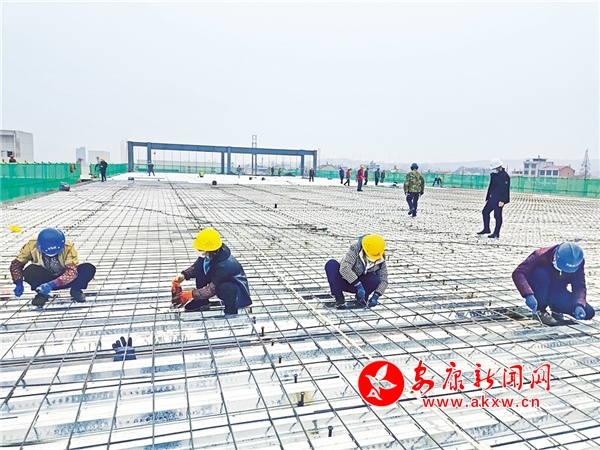 在寧陜縣飛地園區(qū)標(biāo)準(zhǔn)化廠房二期第3批次項目建設(shè)工地,工人在進行第三層封頂。