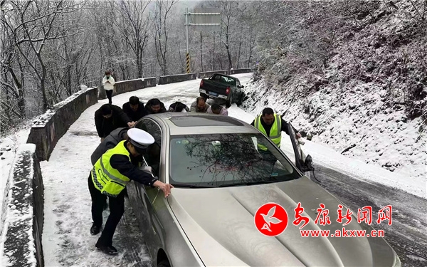 本網(wǎng)訊(通訊員 康忠靜)2月2日,寧陜縣突降大雪,道路結(jié)冰。寧陜縣公安局交通管理大隊(duì)廣貨街交警中隊(duì)先后接到多起報(bào)警求助,中隊(duì)民輔警聞警而動(dòng),協(xié)同公路段養(yǎng)護(hù)職工對(duì)被困車輛展開救援工作。