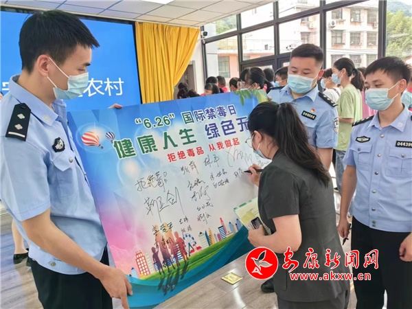 活動以歌舞、三句半、詩歌朗誦、禁毒知識有獎問答、觀看禁毒短視頻等多種方式呈現(xiàn)。禁毒民警用方言演繹的三句半《毒品害己又害人》,形象生動地闡述了毒品的危害,贏得了現(xiàn)場觀眾的陣陣掌聲;社區(qū)姐妹花舞蹈隊活力四射的健身舞《花開無毒》,展現(xiàn)了對美好生活的向往,遠離毒品健康人生煥發(fā)的蓬勃激情和生命力;配樂詩朗誦《讓生活更美好》呼吁我們共同攜起手來用愛喚起希望,用心抗拒毒魔;一曲《我相信》將活動引入高潮。整個活動過程中還穿插了毒品知識搶答、“健康人生 綠色無毒”簽字儀式,觀看禁毒宣傳短片“秦小尉”3D動畫、MG微視頻等互動環(huán)節(jié),在主持人帶領下的“拒絕毒品 從我做起”禁毒宣誓活動更加彰顯了全社會群眾參與禁毒人民戰(zhàn)爭、打贏全面禁毒人民戰(zhàn)爭的信心和決心。