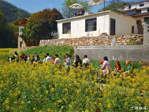 漁灣村位于寧陜縣城以南,距離縣城約11公里。這里依山傍水,景色秀美,已建成鹿柴山集精品民宿、稻田小火車等項目,并打造出朱鹮保育稻田、陜南鄉(xiāng)村田園等自然人文景致,有著豐富的生態(tài)資源和深厚的文化底蘊。清明時節(jié),正是油菜花盛開的季節(jié),田間地頭金黃一片,吸引了眾多游客前來觀賞。