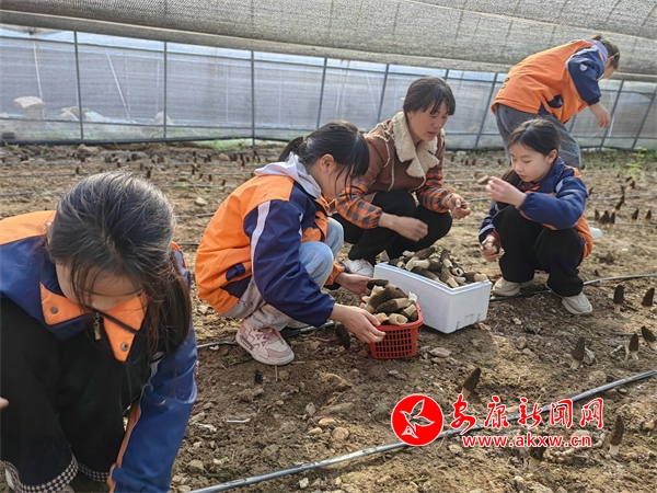“課堂”上,學(xué)生在技術(shù)員的帶領(lǐng)下走進(jìn)大棚種植基地,零距離接觸農(nóng)作物,師生認(rèn)真聆聽(tīng)技術(shù)員對(duì)菌類、瓜果等作物功效的細(xì)致介紹,并熱情地解答學(xué)生們的提問(wèn),講解種植過(guò)程,帶領(lǐng)學(xué)生體驗(yàn)西瓜育種、采摘羊肚菌等勞動(dòng)項(xiàng)目,增長(zhǎng)了學(xué)生對(duì)作物的認(rèn)知能力和基本勞動(dòng)常識(shí),讓學(xué)生感受到現(xiàn)代農(nóng)業(yè)技術(shù)的魅力,領(lǐng)會(huì)吃苦耐勞、艱苦奮斗的精神。