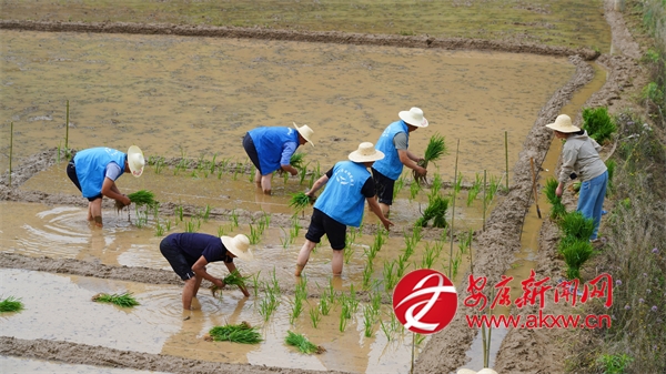 6月5日,走進(jìn)城關(guān)鎮(zhèn)漁灣村麻莊組,一片熱火朝天的農(nóng)忙景象映入眼簾。農(nóng)技人員與農(nóng)戶(hù)們并肩作戰(zhàn),共同進(jìn)行水稻插秧作業(yè)。劃線(xiàn)分區(qū)、精準(zhǔn)配肥、均勻撒肥、有序插秧……每一項(xiàng)工作都進(jìn)行得有條不紊,大家分工明確、配合默契,田間地頭處處洋溢著忙碌而歡快的氣息。