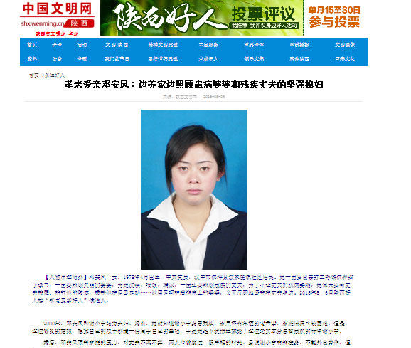 安康新聞網(wǎng)訊(通訊員 龐浩)5月9日,陜西文明網(wǎng)專欄講述了寧陜縣筒車灣鎮(zhèn)七里村外嫁女鄧安鳳的感人事跡,日前,她被評為“中國好人”“全國孝親敬老之星&r……
