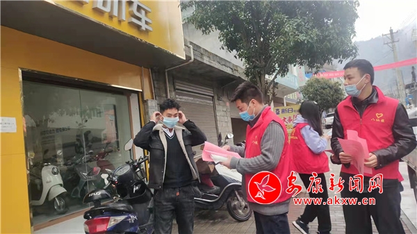 3月25日,平利縣八仙中學(xué)志愿者小分隊(duì)?wèi)?yīng)邀走進(jìn)八仙鎮(zhèn)街道,開展疫情防控宣傳志愿服務(wù),他們走進(jìn)門店超市、小區(qū)、市場(chǎng),廣泛宣傳勤洗手、常通風(fēng)、戴口罩、測(cè)體溫、打噴嚏捂口鼻、少出門、不聚集,做好疫苗接種等疫情防控常識(shí),挨個(gè)勸說(shuō),挨個(gè)引導(dǎo),充分發(fā)揚(yáng)了先鋒模范作用。 (圖文/李傳祥)Sf4安康新聞網(wǎng)