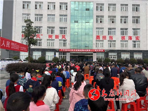 為了增強宣傳教育效果,該校還組織師生參與了“平利縣2023年平安建設(shè)集中宣講——進(jìn)大貴鎮(zhèn)”活動,要求人人當(dāng)好“平安大貴代言人”、正確接聽12340電話,F(xiàn)場分發(fā)了宣傳資料,同時引導(dǎo)參會人員觀看了精美的平安建設(shè)宣傳展板,將平安建設(shè)的知識點以圖文并茂的形式呈現(xiàn)給師生和群眾,幫助他們更好地理解和記憶。