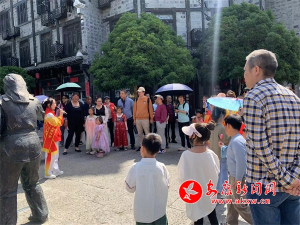 “各位游客大家好,我是自石泉縣城關(guān)一小的小小講解員,歡迎大家跟隨我的腳步游覽石泉秦巴老街”。這五一假日期間從石泉秦巴老街里傳來的朗朗童聲,來自“小小講解員·童音話石泉”——石泉縣全域旅游紅領(lǐng)巾講解員培訓(xùn)班的小朋友們用稚嫩且熟練的話語、自信的神態(tài)向往來游客們介紹了石泉老街東西城門、石泉縣衙、禹王宮、江西會館以及老街上的美食,小小講解員各個儀態(tài)大方、表達(dá)清晰、發(fā)揮自如,贏得了游客們駐足圍觀,時不時傳來陣陣掌聲和夸獎。