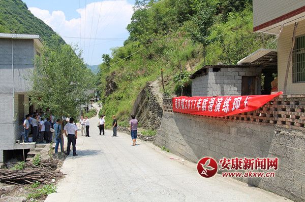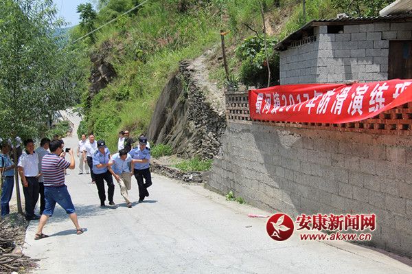 本次演練主要是模擬溝道邊排水涵洞堵塞,造成河水上漲、突發(fā)山洪滑坡泥石流等地質災害,蜀河鎮(zhèn)政府立即啟動防滑坡搶險應急預案,由政府干部和公安民警組成的人員轉移組,對災害發(fā)生地的居民進行緊急撤離。7Bw安康新聞網