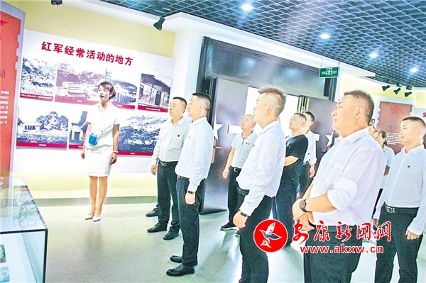 組織機(jī)關(guān)干部在旬陽市紅軍鎮(zhèn)紅色教育基地參觀學(xué)習(xí)。