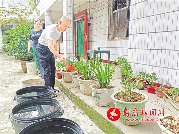 王清芬夫婦用淘米、洗菜水澆花xhT安康新聞網(wǎng)