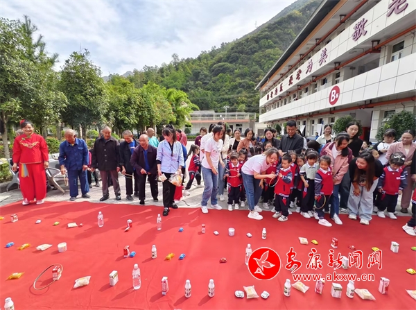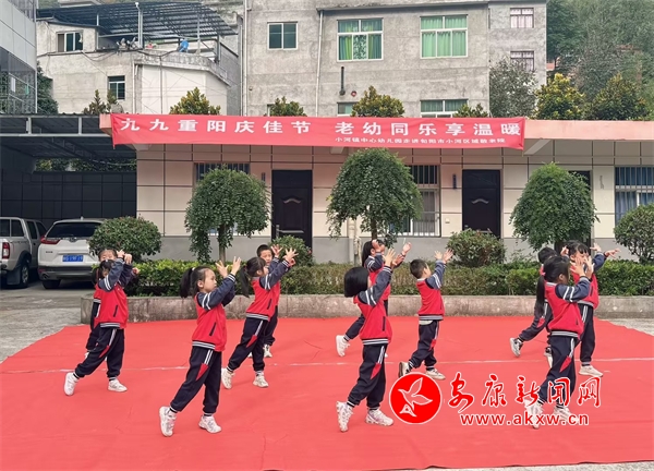 為弘揚(yáng)中華民族尊老敬老的傳統(tǒng)美德,培養(yǎng)幼兒尊老、敬老、助老、愛老的美好品質(zhì),在重陽(yáng)節(jié)來臨之際,10月10日,旬陽(yáng)市小河鎮(zhèn)中心幼兒園組織孩子們,走進(jìn)小河區(qū)域敬老院,開展“九九重陽(yáng)慶佳節(jié),老幼同樂享溫暖”實(shí)踐活動(dòng);顒(dòng)中,孩子們?yōu)闋敔斈棠太I(xiàn)上了精心準(zhǔn)備的歌舞表演,老人們和孩子們一起系上大紅綢,扭起秧歌來,大家一起進(jìn)行了有趣的游戲。孩子們用稚嫩的動(dòng)作,甜美的笑容,給老人們平淡的生活里帶去了歡樂。(通訊員 劉曉玲 李冬梅)