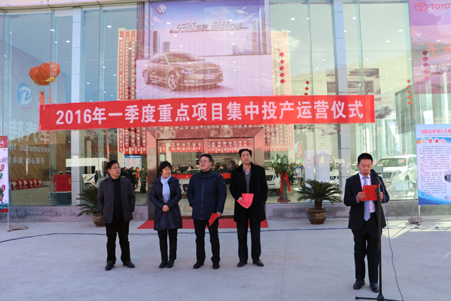 1月24日,旬陽(yáng)縣舉行2016年一季度重點(diǎn)項(xiàng)目集中投產(chǎn)運(yùn)營(yíng)儀式。這次集中投產(chǎn)運(yùn)營(yíng)的有旬陽(yáng)杜邦汽車(chē)服務(wù)中心、旬漢食品年產(chǎn)1000噸烘焙食品加工項(xiàng)目、綠爾佳豆制品加工……