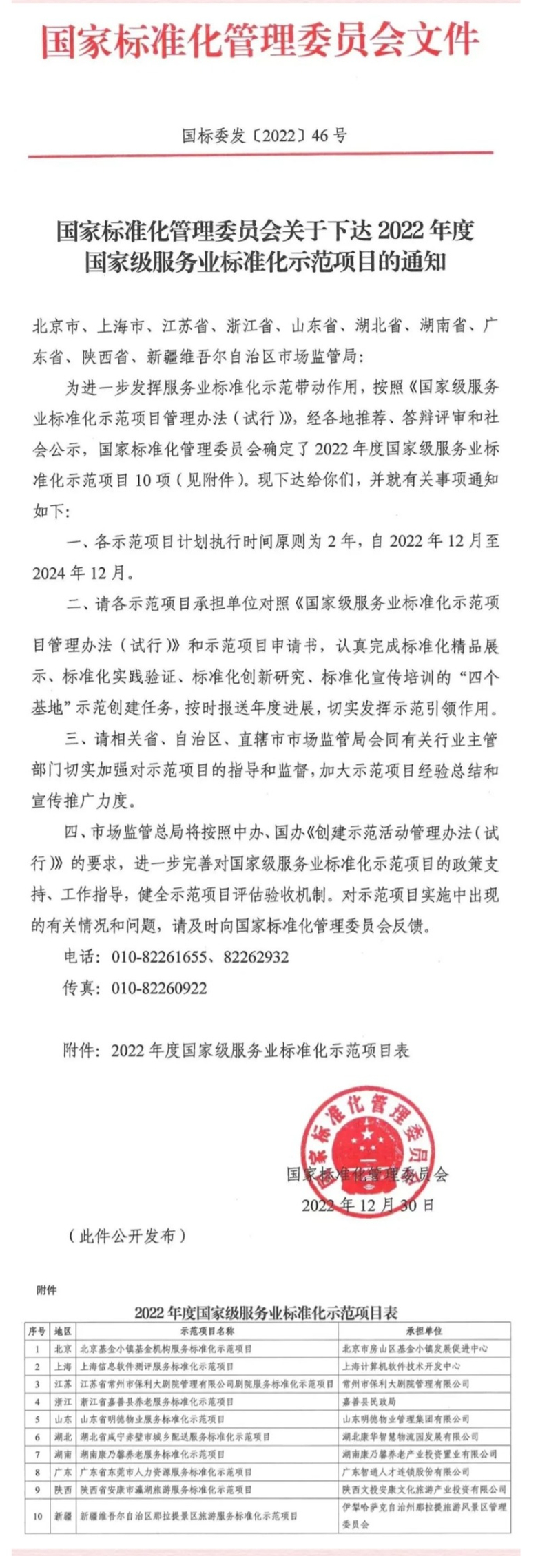 2022年12月30日,國家標(biāo)準(zhǔn)化管理委員會下達(dá)全國十個國家級服務(wù)業(yè)標(biāo)準(zhǔn)化示范項目,“陜西省安康市瀛湖旅游標(biāo)準(zhǔn)化示范項目”,經(jīng)過資審、文審、選拔、答辯、公示等程序,從全國一百余家單位中脫穎而出、光榮上榜,成為陜西省第一個國家級旅游標(biāo)準(zhǔn)化示范項目。nNt安康新聞網(wǎng)