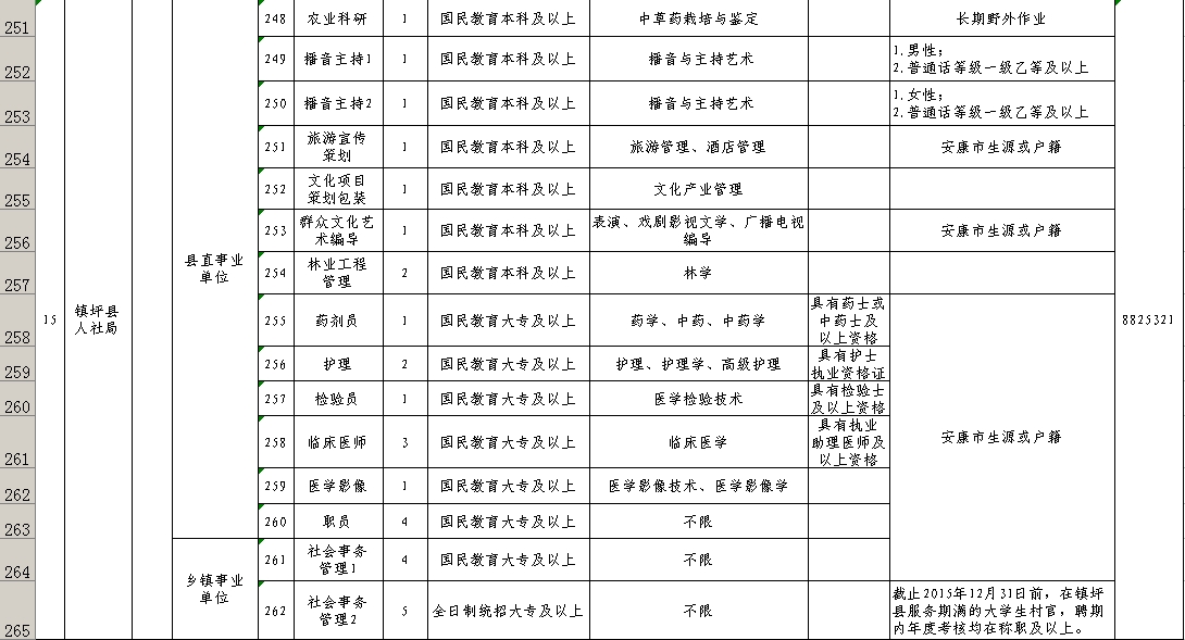 按照安康市2015年事業(yè)單位面向社會公開招聘工作人員公告的安排,鎮(zhèn)坪縣人社局精心開展該縣2015年事業(yè)單位公開招聘工作人員的活動。此次招考,鎮(zhèn)坪縣共設(shè)置了37個崗位,其中 3個崗位專業(yè)不限,11個崗位大專學(xué)歷即可報考,考試報名時間為2015年9月19日08:00--2015年9月22日18:00,歡迎社會各界積極報考。fAZ安康新聞網(wǎng)