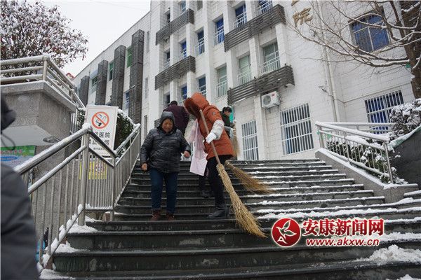 安康新聞網(wǎng)訊(通訊員 杜波兒 楊云波)2018年 1月4日,迎來了新年的第一場大雪,為百姓們帶來美麗雪景的同時也給來院就診的患者帶來諸多不便。當你在賞雪景,曬美照時,鎮(zhèn)坪縣醫(yī)院院辦七點多就來到醫(yī)院,組織行政、后勤醫(yī)護人員掃雪除冰,全力保障患者安全就醫(yī),確保醫(yī)療工作的正常運轉。miK安康新聞網(wǎng)