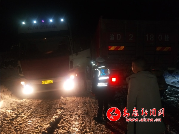 大雪致30余輛貨車滯留 鎮(zhèn)坪交警通宵救援