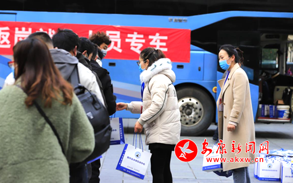 為保障返崗人員的安全健康,工作人員對(duì)專車內(nèi)外進(jìn)行了反復(fù)消毒,運(yùn)輸車輛滿載率不超過(guò)50%,實(shí)施乘客隔位、分散就坐,在每輛車中選取一名車隊(duì)長(zhǎng),委托人力資源服務(wù)公司跟車全程護(hù)航,貼心服務(wù)。還為每名司乘人員準(zhǔn)備了裝有口罩、餅干、礦泉水等物資的“愛(ài)心包”。