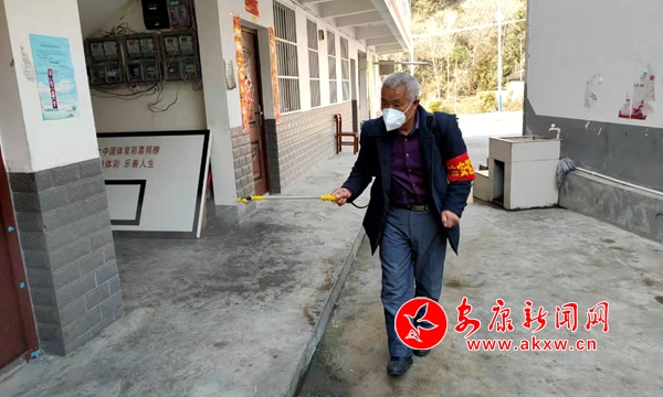 抗擊疫情刻不容緩,噴灑消毒液能有效防止新冠肺炎傳播,作為村上的防疫員,在消殺工作中有經(jīng)驗(yàn),他便主動(dòng)請纓,擔(dān)起責(zé)任,按規(guī)定的藥液比例現(xiàn)場配置藥劑,背上消毒壺一家一戶的仔細(xì)噴灑消毒水,雖然天氣寒冷,一天下來,他銀色的頭發(fā)上汗水滴滴下落,但他認(rèn)為這樣很有意義。全村消毒一遍需要兩天時(shí)間,盡管任務(wù)重,耗時(shí)長,但他從沒有中途放棄過,也沒有抱怨過,更沒有收取一分報(bào)酬,像這樣消殺,至目前,他一共進(jìn)行了三次。每當(dāng)有返村人員回來時(shí),他也是主動(dòng)上門房前屋后、屋里屋外的進(jìn)行消殺。村黨支部書記劉道金多次勸他讓年輕人干這種體力活,他嚴(yán)肅的說:“一個(gè)黨員,一面旗幟,我這面旗幟永遠(yuǎn)不能倒!”