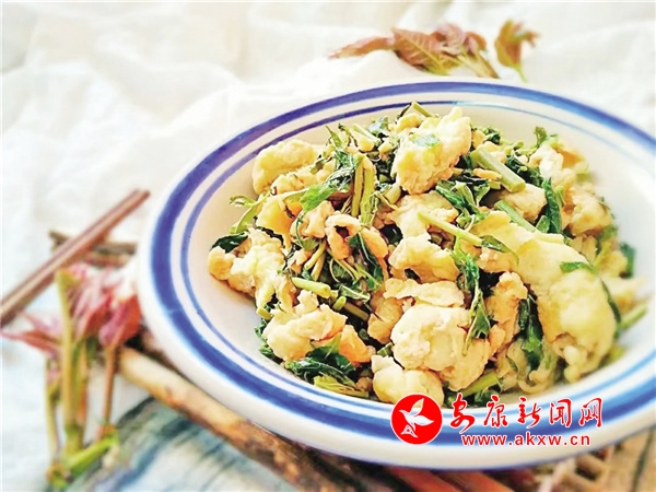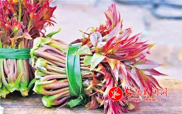 香椿 春天必吃的一道時(shí)令菜。香椿又叫做椿芽、春尖葉,香椿初發(fā)芽長(zhǎng)葉的時(shí)候,掐香椿頭拿來(lái)做成香椿炒雞蛋吃,吃在嘴里脆嫩新鮮,味美爽口,齒頰俱芬。鎮(zhèn)坪的香椿響當(dāng)當(dāng)?shù)那嗄塾形,紅得發(fā)紫的葉芽,閃著點(diǎn)兒油光,看起來(lái)就很好吃。kZu安康新聞網(wǎng)
