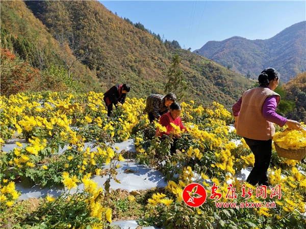 中壩村民在金絲皇菊種植基地務工