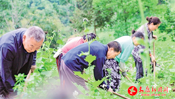 曾家鎮(zhèn)金坪村村民正在云木香種植基地里除草Bd3安康新聞網(wǎng)