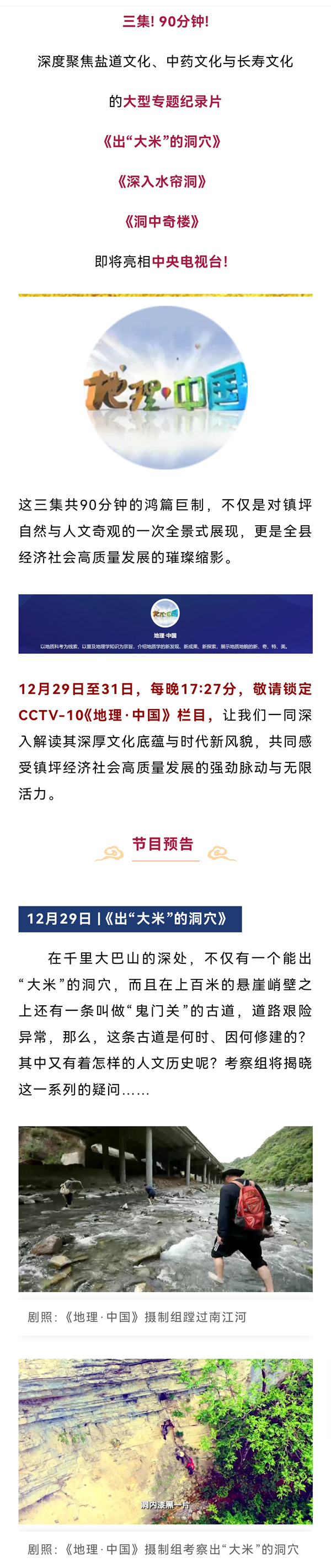 鎮(zhèn)坪再添重頭大戲 | 三集大型紀錄片亮相中央電視臺