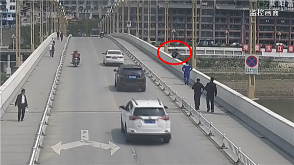 紫陽縣統(tǒng)計局干部、退役軍人吳勇騎車辦事途中路過大橋,正好注意到該男子。此時男子身體前傾,搖搖欲墜,為了不刺激到該男子,情急之下吳勇急中生智,他先在遠處將車靠邊停下,裝作路過慢慢向其靠近,待走到男子身旁后假裝借用打火機,分散注意力,趁男子放下防備時,吳勇一個箭步,雙手抱住男子將他從橋上拉回,害怕男子再次做出不理智的行為,在將男子拉回后吳勇仍緊緊抱著男子不敢放手。