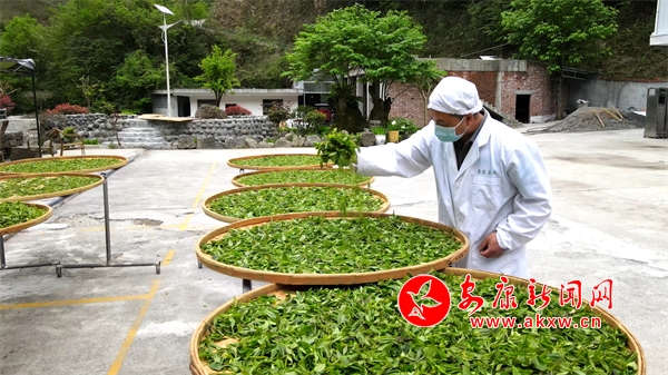 4月28日,紫陽壹封天葉茶業(yè)有限公司技術人員正在對采摘回來的古茶樹鮮葉進行攤晾。通訊員 儲茂銀攝