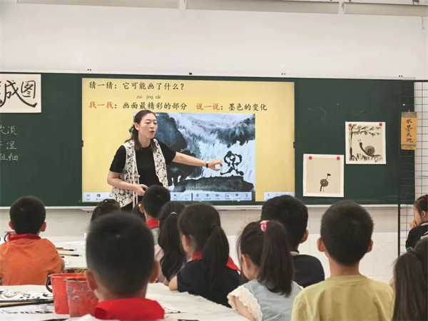 活動(dòng)中,鐘樓第二實(shí)驗(yàn)小學(xué)副校長(zhǎng)方文婷和常州經(jīng)開(kāi)區(qū)教學(xué)部主任楊婷老師分別呈現(xiàn)了一年級(jí)美術(shù)課程《葉子片片》和《練筆成圖》。兩位老師的課程內(nèi)容充滿創(chuàng)新與深度。授課內(nèi)容從印刷術(shù)與拓染法相結(jié)合,引導(dǎo)學(xué)生們探索美術(shù)與生活的緊密聯(lián)系,到通過(guò)手指操的引導(dǎo),幫助孩子們?cè)谥饾u掌握水墨畫(huà)的基本坐姿和執(zhí)筆方法中感受傳統(tǒng)文化魅力。