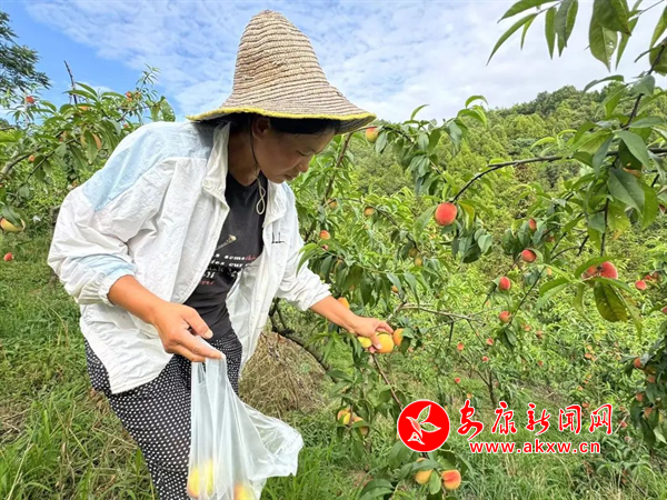 果園負責人胡小飛是王家河村的致富帶頭人,已種桃6年多。憑著成熟的種植和管理經(jīng)驗,他家的桃子色澤鮮艷、汁多肉厚、口感脆甜,深受游客們的青睞。“今年雨水少,桃子雖然個頭小,但味道特別甜”,楊秀榮穿梭在桃園里邊摘桃邊介紹道。