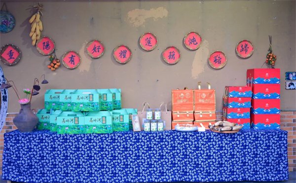 此外,活動現(xiàn)場精心打造了“重陽有好禮,蓮藕燉豬蹄”網(wǎng)紅墻,成為參會人員打卡留戀的熱門地點(diǎn);同時,設(shè)置了農(nóng)副產(chǎn)品展銷區(qū),集中呈現(xiàn)紫陽蒸盆子、蒿坪河蓮藕、紫陽荷葉茶、蓮藕燉豬蹄等特色農(nóng)副產(chǎn)品。值得關(guān)注的是,硒園農(nóng)莊此次首次推出“蒿坪河蓮藕燉豬蹄”伴手禮盒,分為“四至五人份”和“八至十人份”兩種規(guī)格,于重陽節(jié)前夕上市。該禮盒將堂食菜品轉(zhuǎn)化為便攜商品,為當(dāng)?shù)厣徟轰N售拓展了新渠道,也為蓮藕產(chǎn)業(yè)鏈延伸做了初步嘗試。ZgR安康新聞網(wǎng)