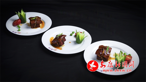 “陜南淡水魚餐飲暨‘贛義鑫杯’烹飪技能大賽”是張顯峰走出去學(xué)習(xí)交流檢驗(yàn)自己菜品研究成果的平臺(tái)。在準(zhǔn)備本次比賽菜品時(shí),他選用了紫陽縣最好的食材“富硒鱘魚”、花鰱魚,土黑豬五花肉及羊肚菌等蔬菜,精心制作了兩道菜品,第一道菜品是紫陽茶香宴中的主菜——茶香鱘龍。這道菜擺盤高雅,肉質(zhì)細(xì)膩,口味鮮美,茶香與淡水魚的完美結(jié)合,讓人仿佛置身于清新的茶山之間,品味著大自然的饋贈(zèng)。uGr安康新聞網(wǎng)