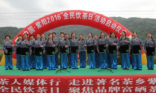 4月17日,由紫陽縣委、紫陽縣政府、中國茶葉學(xué)會(huì)和陜西省茶人聯(lián)誼會(huì)共同舉辦的紫陽縣2016“全民飲茶日”活動(dòng)啟動(dòng)儀式在向陽鎮(zhèn)富硒茶觀光園隆重舉行!叭瘛