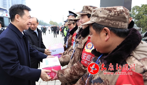 郭青一行先后到市公安局漢濱分局綜合執(zhí)法辦案管理中心、中心城區(qū)金州廣場街面智慧指揮聯(lián)控平臺執(zhí)勤點、漢濱區(qū)新城派出所等地,親切看望公安巡警、特警、交警、執(zhí)勤民警和紅袖章義務巡邏隊員等一線執(zhí)勤人員。每到一處,他都與大家一一握手并親切交談。他指出,過去一年,全市公眾安全感連續(xù)三年全省第一,平安建設知曉率、掃黑除惡專項斗爭群眾知曉率全省第一,為全市發(fā)展穩(wěn)定作出了突出貢獻,凝聚了全市政法系統(tǒng)尤其是廣大公安干警的汗水和奉獻,甚至是流血和犧牲。郭青向大家表示崇高敬意,帶去了市委、市政府的關心和慰問,并向全市廣大公安干警及親屬拜年。Wq7安康新聞網