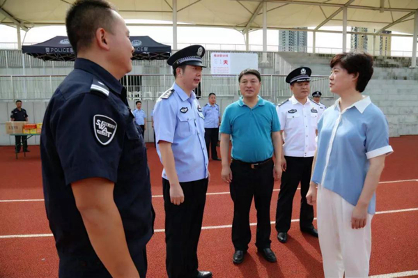 本網(wǎng)訊 7月30日下午,市委副書記、政法委書記趙璟,市政府副市長(zhǎng)、市公安局局長(zhǎng)張維護(hù)帶領(lǐng)市級(jí)有關(guān)部門負(fù)責(zé)同志,看望慰問堅(jiān)守奮戰(zhàn)在高溫一線的執(zhí)勤公安民警,并送上防暑降溫物品。