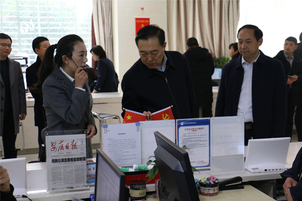在市政務(wù)服務(wù)大廳、市公共資源交易中心,王剛查看各業(yè)務(wù)進(jìn)駐窗口、部分開評標(biāo)室和視頻監(jiān)控室,詳細(xì)了解業(yè)務(wù)辦理情況、招投標(biāo)工作流程、監(jiān)督管理等情況。隨后召開座談會,認(rèn)真聽取市行政審批服務(wù)局工作情況匯報。他強(qiáng)調(diào),要圍繞“全國一流、全省先進(jìn)”目標(biāo),深入推進(jìn)“放管服”改革、相對集中行政許可權(quán)改革和行政審批制度改革,扎實(shí)推進(jìn)政務(wù)服務(wù)“一網(wǎng)通辦”,大力營造良好營商環(huán)境。要不斷提高規(guī)范化水平,建設(shè)一流政務(wù)服務(wù)團(tuán)隊,為群眾和企業(yè)辦事提供更優(yōu)質(zhì)更高效的服務(wù)。