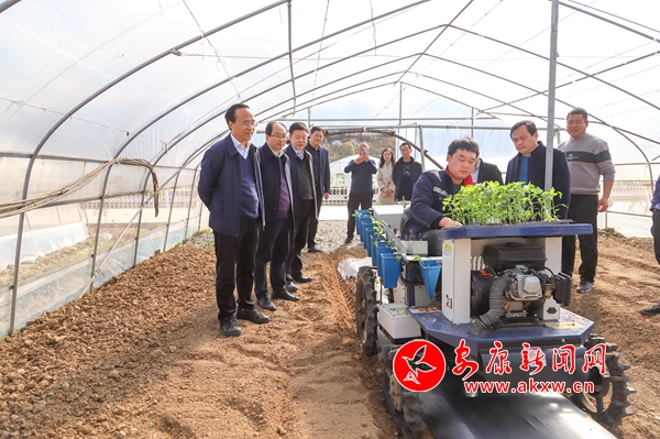 在漢陰縣七葉蓮農(nóng)業(yè)科技有限公司蔬菜種植基地,魯琦走進溫室育苗棚和蔬菜大棚,詳細了解辣椒、黃瓜、西紅柿等蔬菜育苗及旋耕機整地、辣椒機械化栽植情況,對公司“六統(tǒng)一”發(fā)展方式給予充分肯定。他說,要以“1+10+N”蔬菜保供基地建設為契機,圍繞提升設施裝備、科技支撐、組織經(jīng)營現(xiàn)代化水平,聚力推進高標準農(nóng)田、冷鏈物流等基礎設施建設,持續(xù)在農(nóng)機推廣、質量控制、品牌打造、產(chǎn)銷對接上下功夫,加快完善蔬菜生產(chǎn)保供體系,不斷提升蔬菜自給率,確保“菜籃子”安全穩(wěn)產(chǎn)保供。
