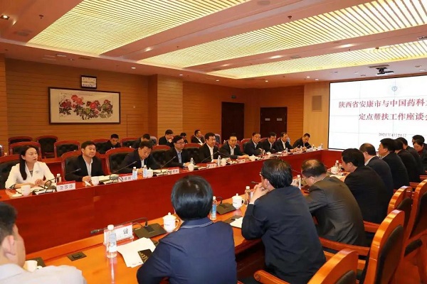 中國藥科大學(xué)黨委常委、副校長陸濤對(duì)郭青一行表示熱烈歡迎。他表示,中國藥科大學(xué)將繼續(xù)深化拓展定點(diǎn)幫扶成果,充分發(fā)揮人才、科研、教育等優(yōu)勢(shì),立足安康資源稟賦,不斷健全幫扶機(jī)制、優(yōu)化幫扶方式,積極搭建校地合作、校企合作平臺(tái),加快推進(jìn)中藥材產(chǎn)業(yè)科技創(chuàng)新和成果轉(zhuǎn)化,實(shí)現(xiàn)優(yōu)勢(shì)互補(bǔ)、互利共贏。同時(shí),將圍繞安康的現(xiàn)實(shí)需求深入研究商討細(xì)化方案,推動(dòng)各項(xiàng)幫扶措施盡早落地落實(shí),在新征程中開創(chuàng)幫扶合作新局面。