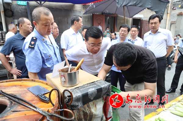 在育才路檢查校園周邊攤點(diǎn)安全整治時(shí),高晶華強(qiáng)調(diào),要用規(guī)劃管攤位、用規(guī)范管瓶位,用信息管日常、用“三長(zhǎng)”管長(zhǎng)遠(yuǎn),突出人性化、精細(xì)化、科學(xué)化,守住燃?xì)狻⒔?jīng)營(yíng)和食品安全底線。